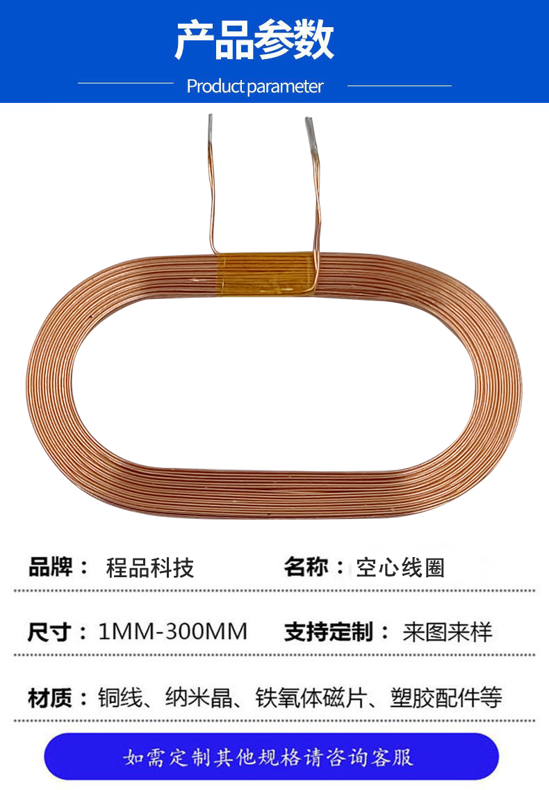 无线充线圈:低损耗设计,提升无线充效率,告别慢充;2. 适配广:兼容Qi等主流标准,手机、耳机都能用;3. 够轻薄:薄至0.7mm级,不占空间,适配小巧充电器;4. 更安全:带屏蔽层,减少磁泄露,避免周边金属发热;5. 可定制:能按设备尺寸、功率需求,定制形状与参数。